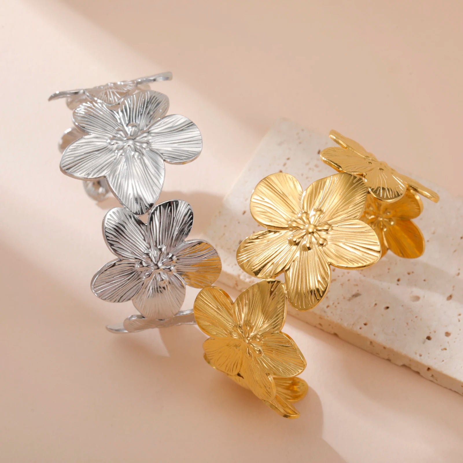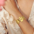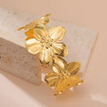 Stainless Steel Hollow Flower Butterfly Open Wide Bracelet